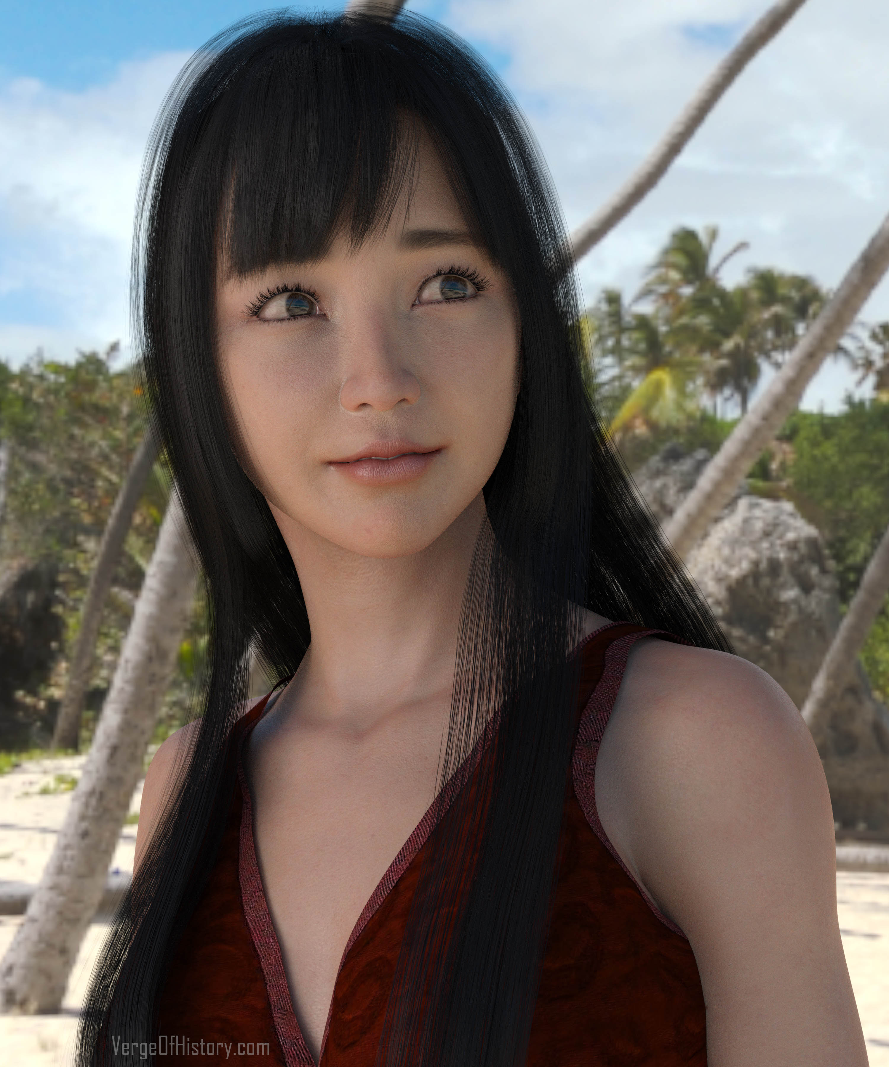 Here’s my first test render of Huoyan as I crafted her basic appearance.